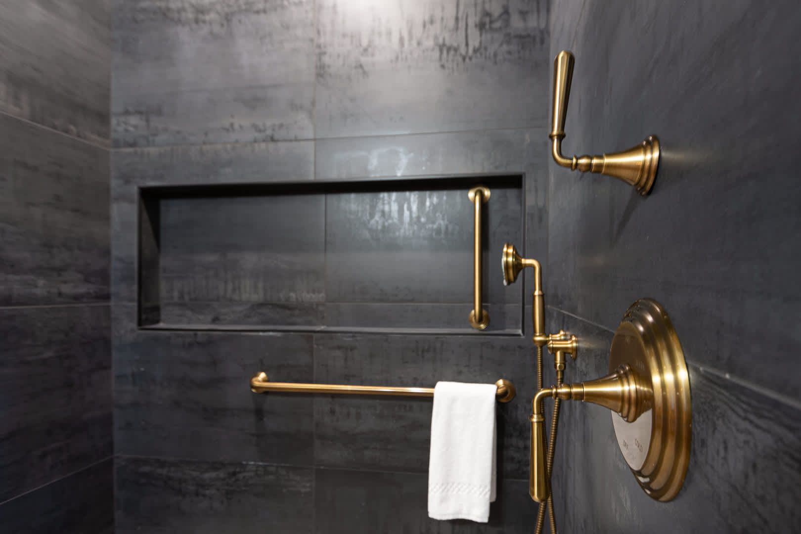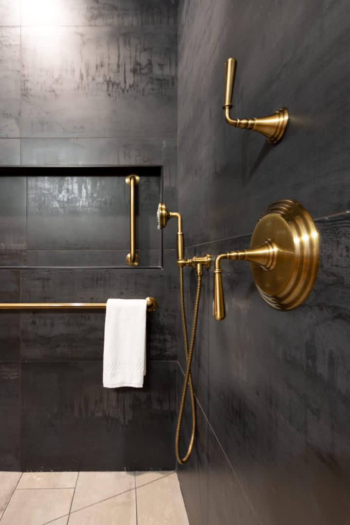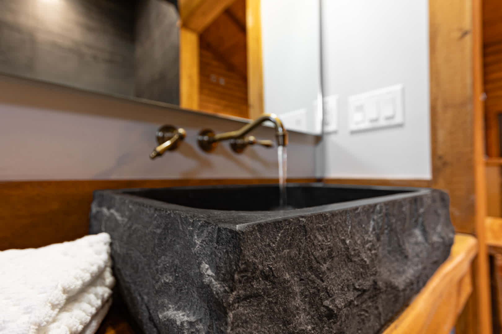The Timber at Holly Branch’s accessible ADA Premium King Room features rich fabrics and tasteful furnishings paired with natural walls and metal details. A luxury, oversized shower with rain showerheads makes this sophisticated room a luxurious experience.