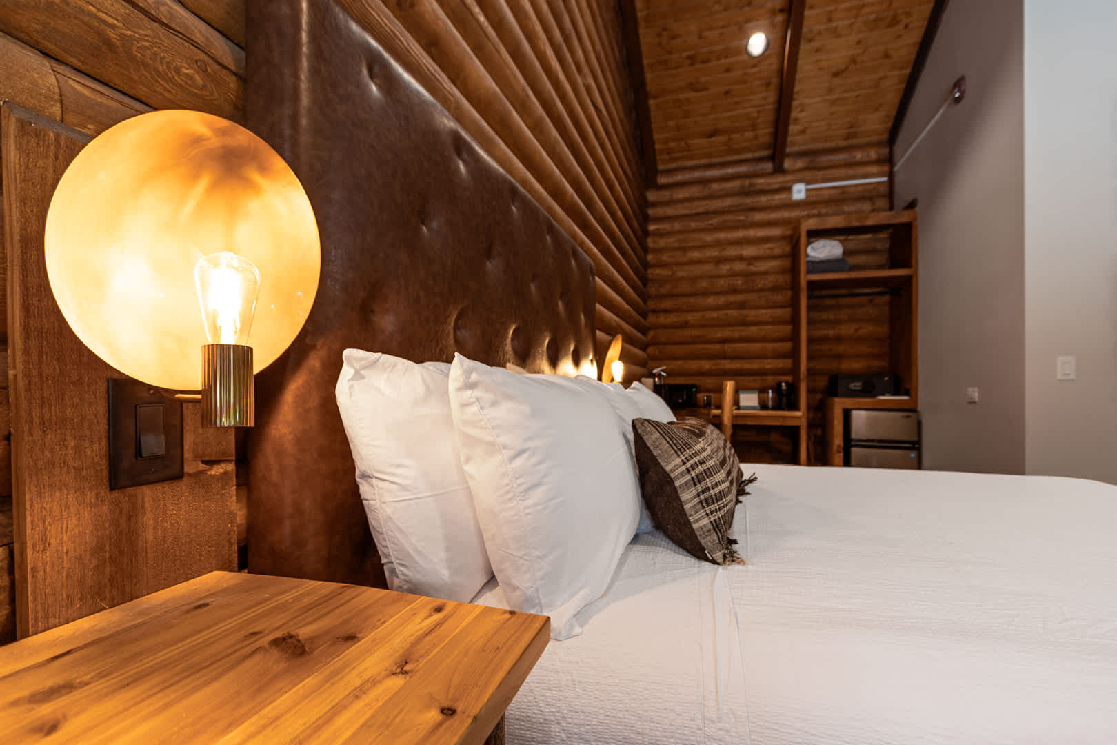 The Timber at Holly Branch's accessible ADA Premium King Room features rich fabrics and tasteful furnishings paired with natural walls and metal details. A luxury, oversized shower with rain showerheads makes this sophisticated room a luxurious experience. We offer a streamlined check-in experience. A personalized door code for your room will be sent to you a few days before your stay, so you can skip the front desk and head straight to your room.