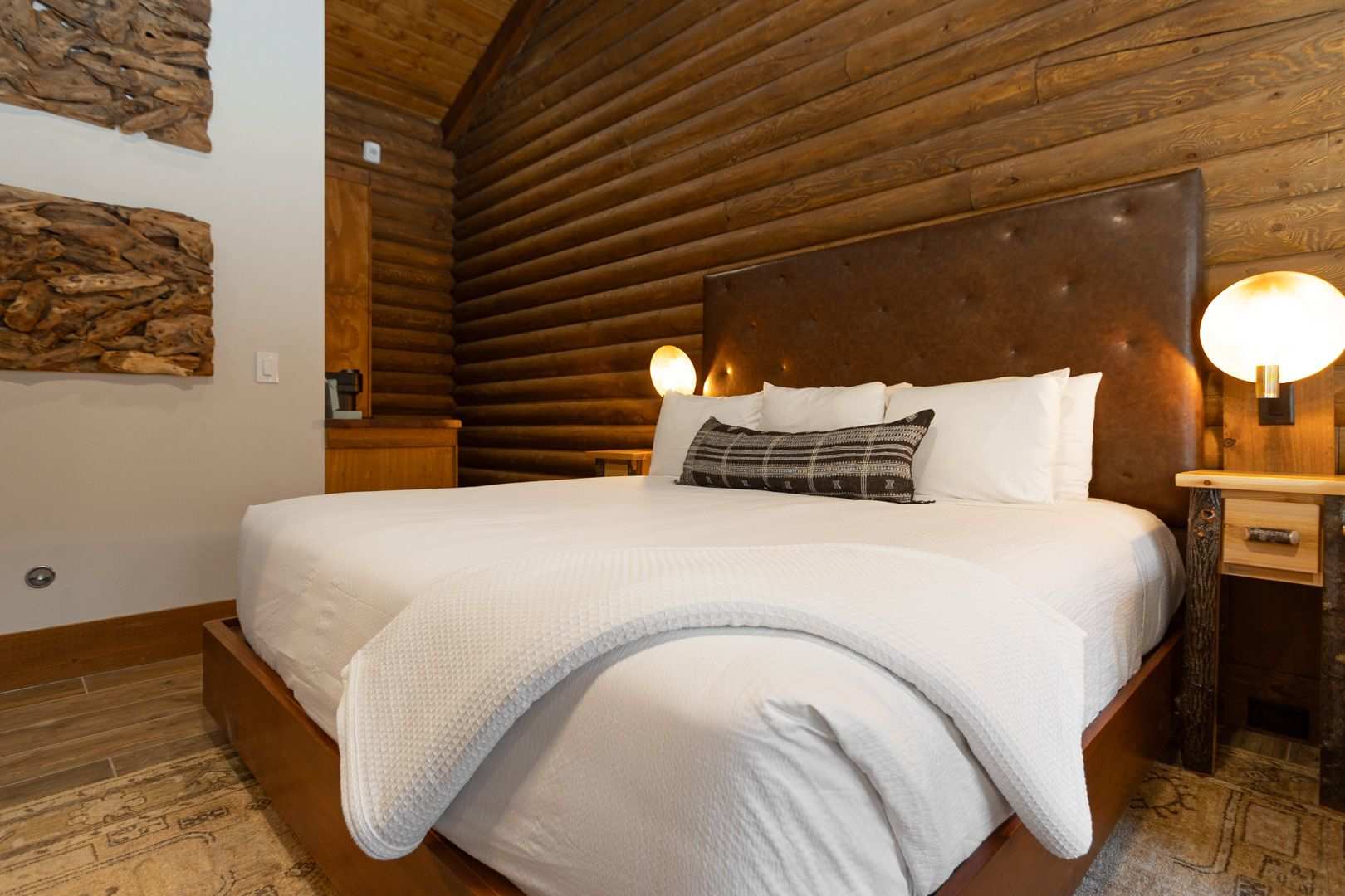 The Timber at Holly Branch’s accessible ADA Premium King Room features rich fabrics and tasteful furnishings paired with natural walls and metal details. A luxury, oversized shower with rain showerheads makes this sophisticated room a luxurious experience.