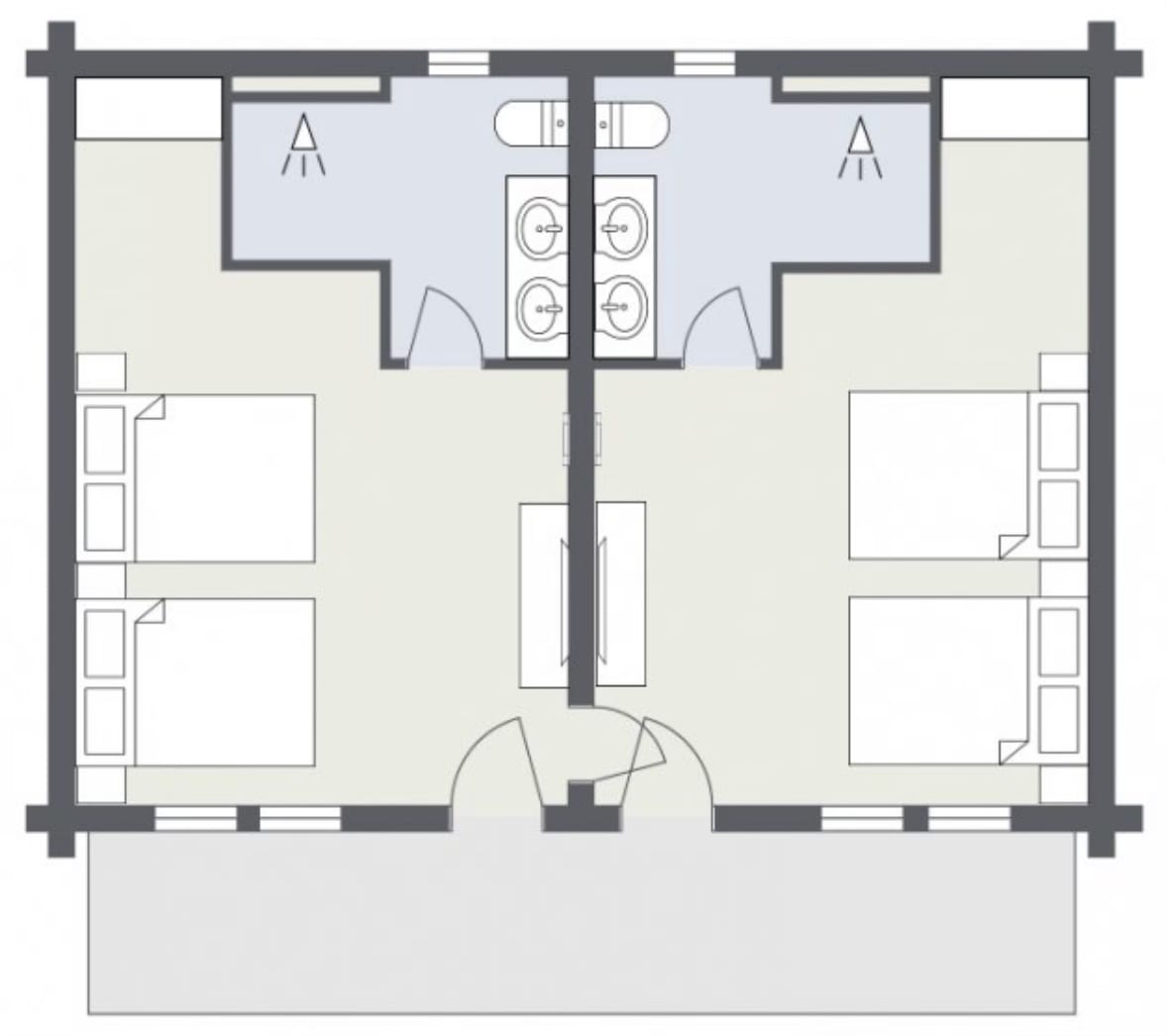 The Timber at Holly Branch’s Family Suite is comprised of two adjoining rooms, each with two queen beds. Both rooms feature our luxe fabrics and contemporary furnishings paired with native walls and metal details. Each room has its own indulgent shower with rain showerheads.